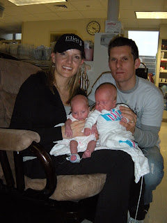 That is amazing news! I think I might have seen Casey in the halls today at Seton, not sure though, I was a bit bleary eyed after being up for so long. Kathy was admitted very early Sunday morning with heavy bleeding and will be there until at least Thursday, when Dr. Berry will give her the steroid injections. As of right now, everyone is fine, if not just a little freaked out over it all. The babies look great, weighing in at 1 lb 2oz, 1 lb 3oz, and 1 lb 4oz (the baby boy of course!) If you guys see an anxiety ridden sleepy guy in the cafeteria hammering away at his laptop, it is probably me.
