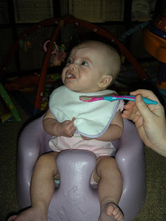 “Feeding was an experience in itself as well. Lila was first so she would cry and start Jack going because he new he only had to wait just 30 more minutes and it was his turn. But low and behold, Brooklyn was like, “hello, I am starting to get hungry, feed me too!” :-) One time I had to sit on the fireplace to feed Lila and keep putting Brooklyn’s pacifier in her mouth so she would stop crying, and walk over and do the same to Jack, all while I was still feeding Lila. Whatever works, right!!!!!! Lila didn’t mess around. She was serious about eating, but gets lazy really fast. Jack doesn’t waste anytime. That boy can down a bottle in 15 minutes flat!!!!!!! Brooklyn on the other hand would just rather use the bottle for a pacifier instead of eating. She does like to suck on something and hold your hand during feeding time.”